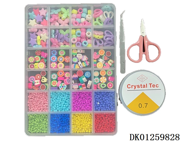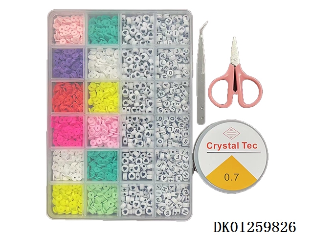 New 24 grid small soft clay and letter bead beading box (with scissors, wire box, and clip)