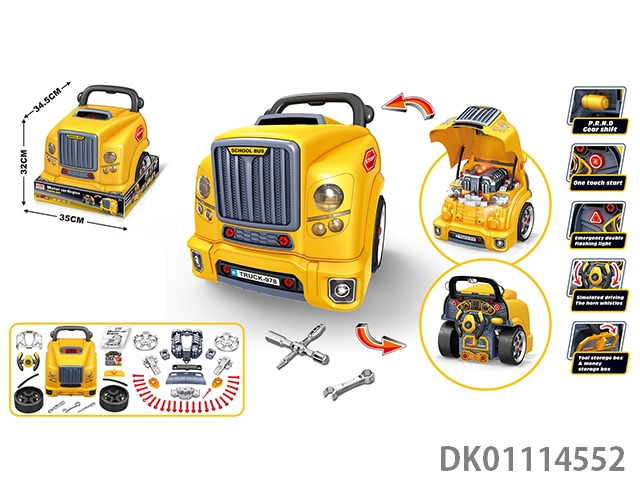 Car assembly, maintenance, driving toy car (school bus)