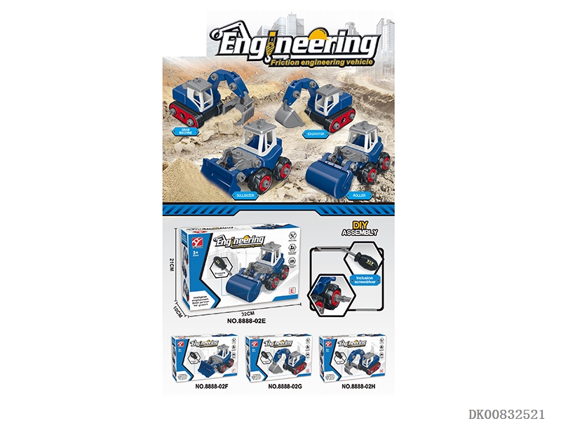 Diy disassembled engineering vehicle with 1 screw batch 4 mix
