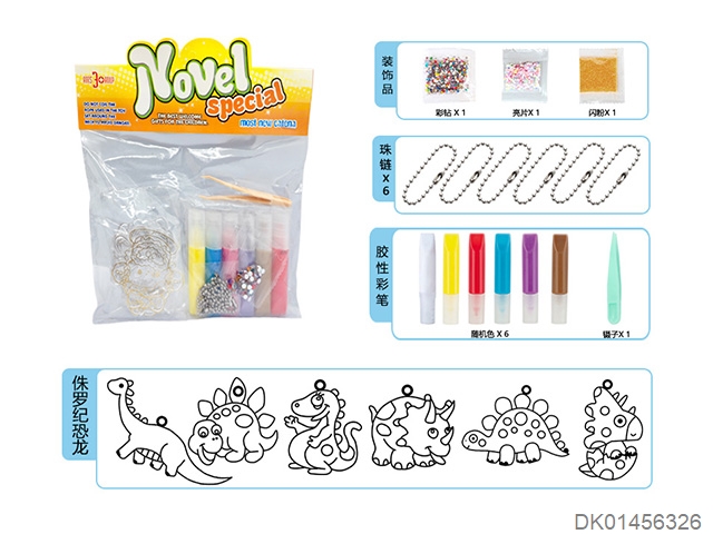 6 Dinosaurs - diy no-baking glue painting pendants