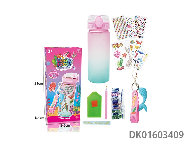 Diy diamond gradient water bottle - girls (600ml, 3 diamond stickers, 2 tattoo stickers, 1 keychain)