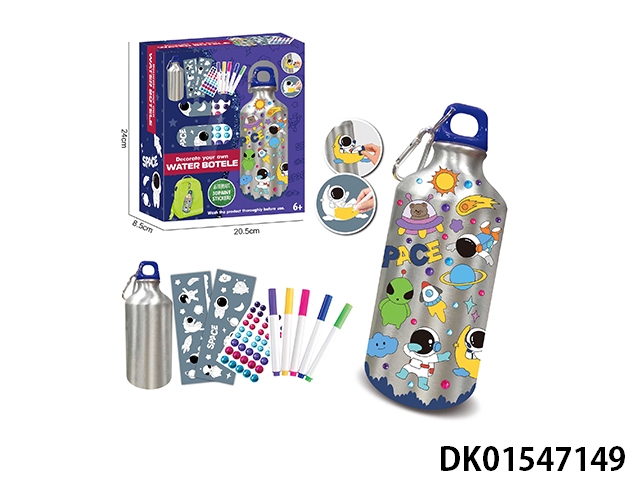 Diy astronaut sticker graffiti water bottle (500ml, 5-color watercolor pen,)