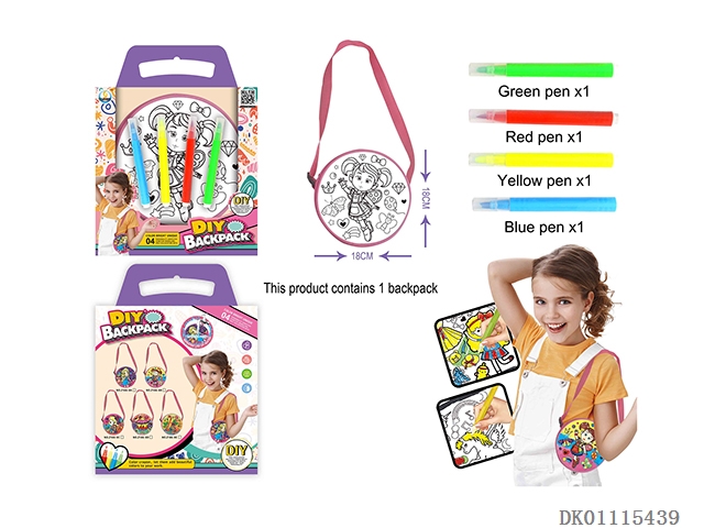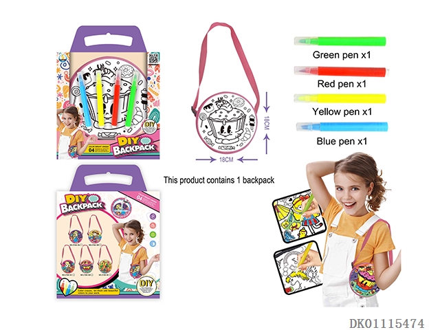 Gift party graffiti washable children’s round shoulder crossbody bag (four pack pen) reusable