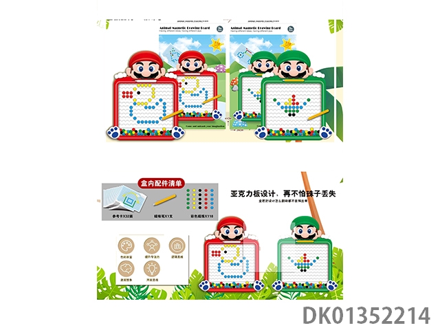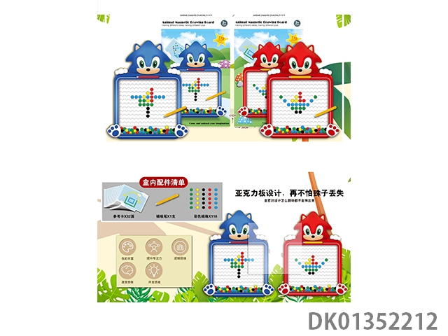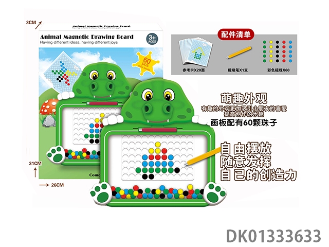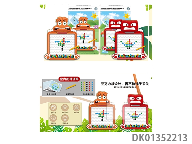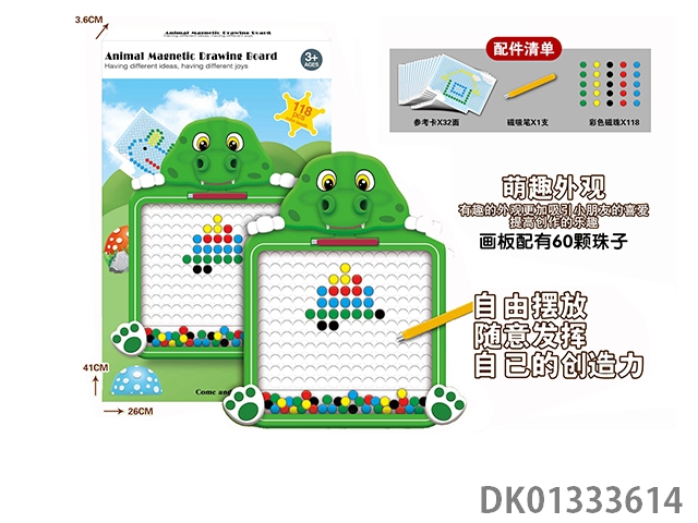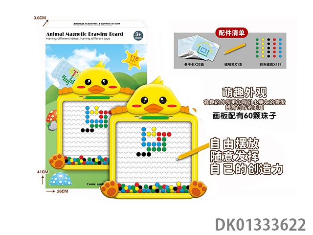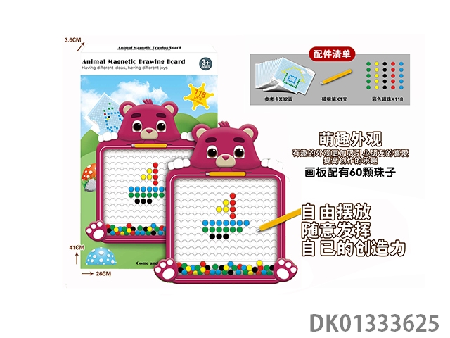 Puzzle animal magnetic drawing board with 118 beads, magnetic suction pen, and 32 reference cards, 1 model