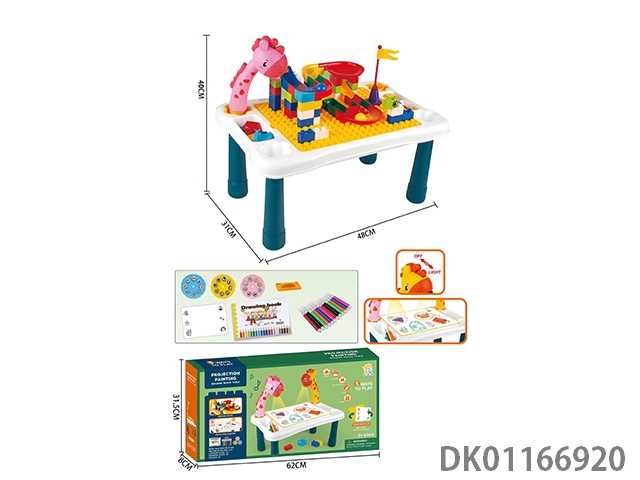 Small double headed giraffe projection table drawing board with light/without music/with building blocks, building blocks