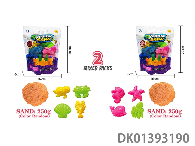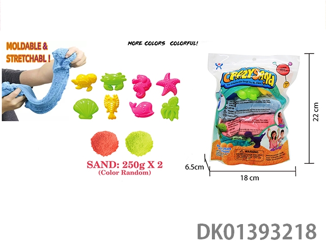 Vertical bagged -500g upgraded version of space sand (stretch sand) and 8-piece set of ocean sand molds (2-color sand)