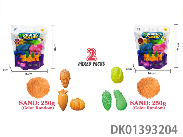 6-Piece set of vertical bagged 500g space sand and vegetable sand molds (2-color sand)