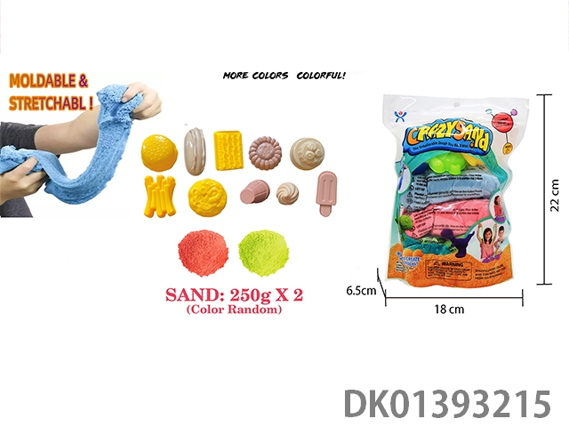 Vertical bagged -500g upgraded version of space sand (stretch sand) and 10 piece set of gourmet sand molds (2-color sand)