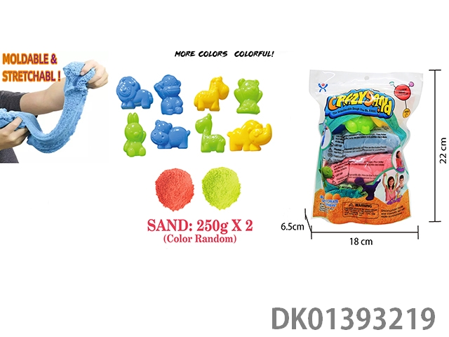 Vertical bagged -500g upgraded version of space sand (stretch sand) and 8-piece set of forest animal sand molds (2-color sand)