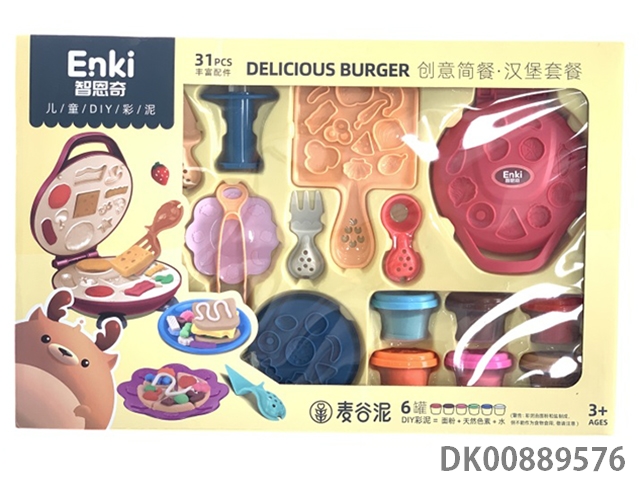 Creative simple meal hamburger colored mud set meal
