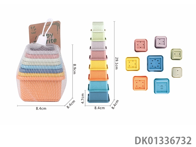 Wheat straw material playing in water, square shaped stacked cup