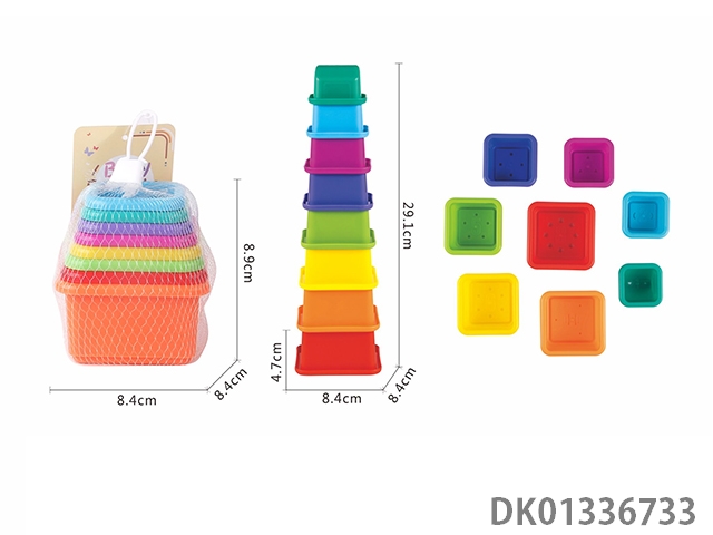 Playing in water, stacking cups in a square shape