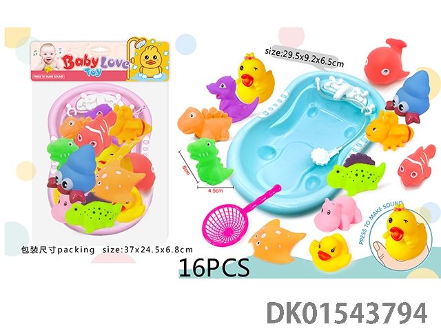 Bathroom water play, vinyl animal toys, bathtub toys, 16pcs