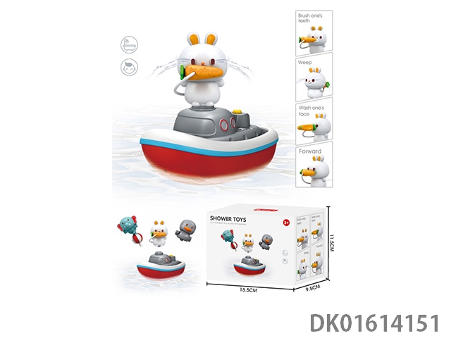 Animal shower boat (1 elephant, 1 rabbit, 1 duck, 1 showerhead) charging version