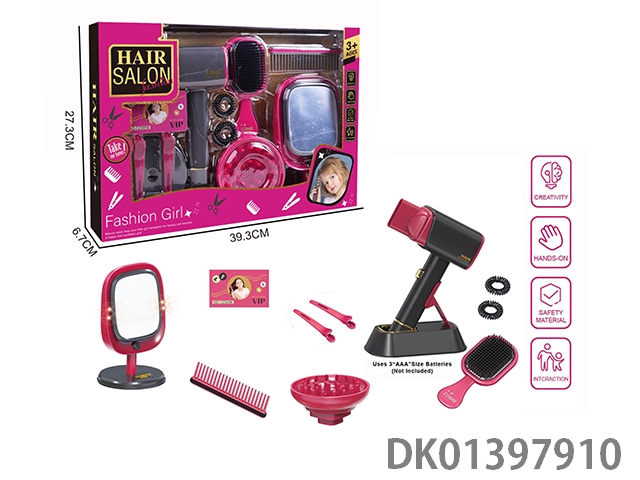 Electric simulation hairdressing set (13 piece set with blow dryer and makeup mirror)