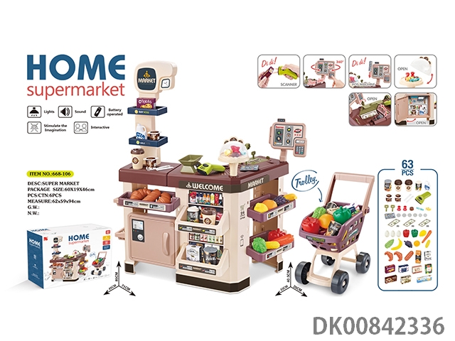 Luxury supermarket combination set with electric scanner, cash register swipe machine, refrigerator spray
