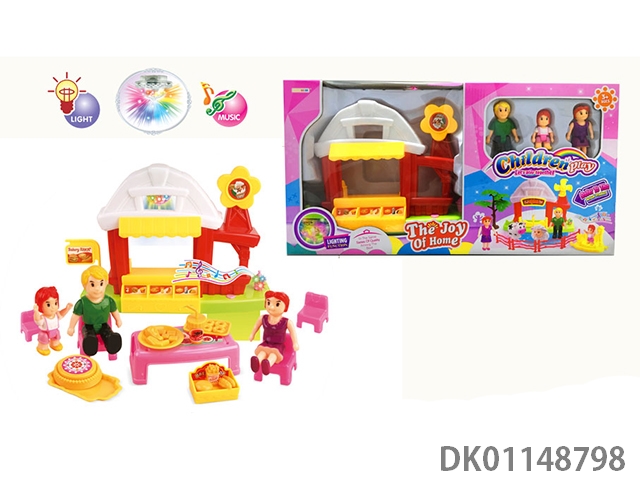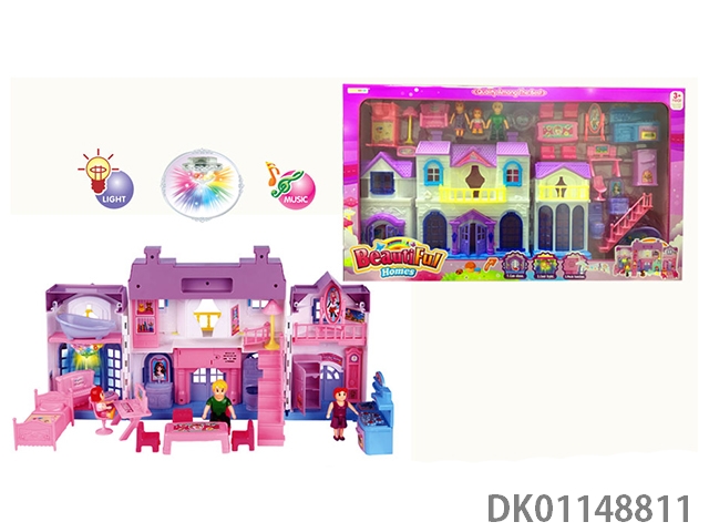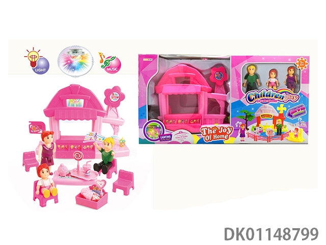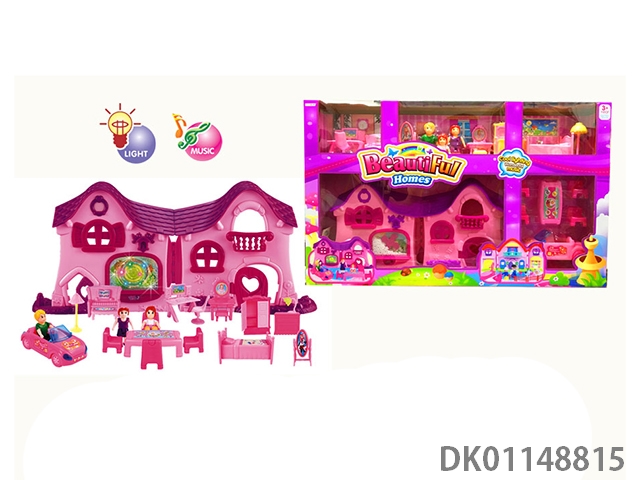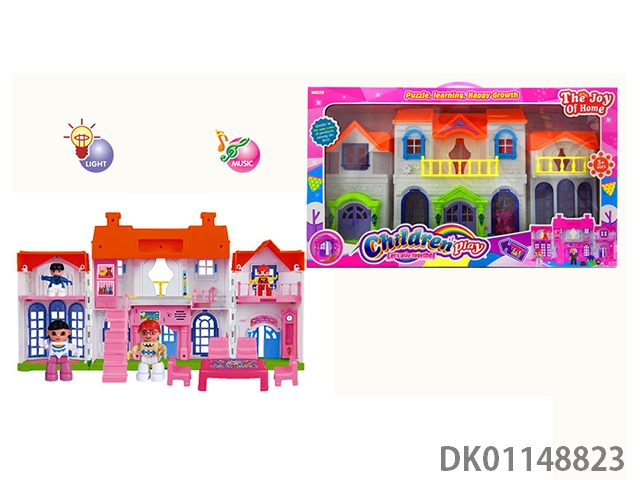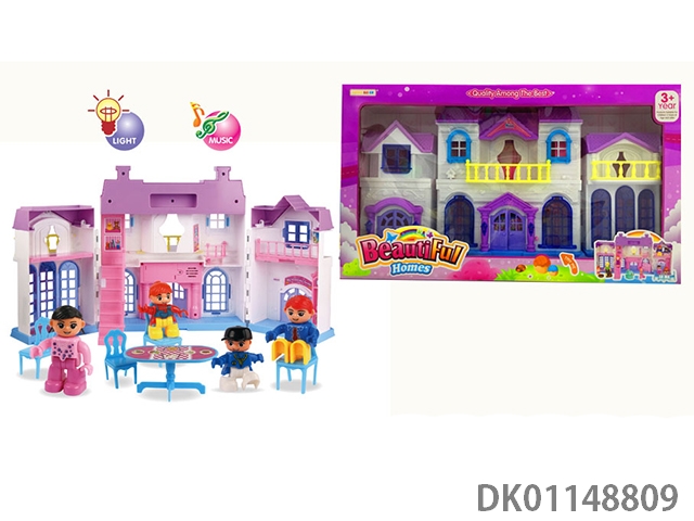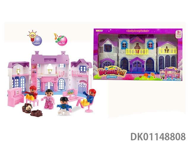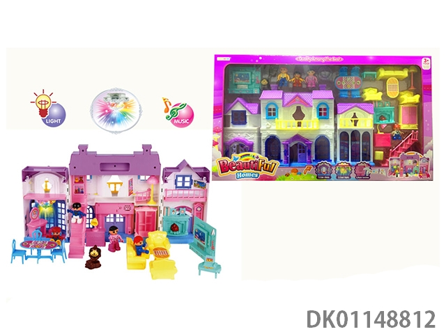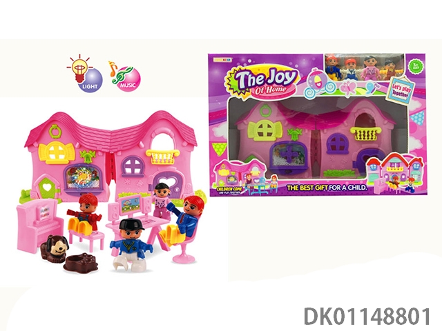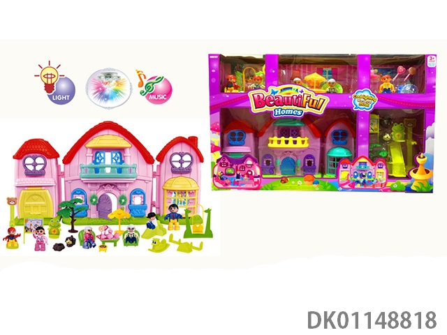 1 Family with 3 cartoon villas set with 7 color chandeliers