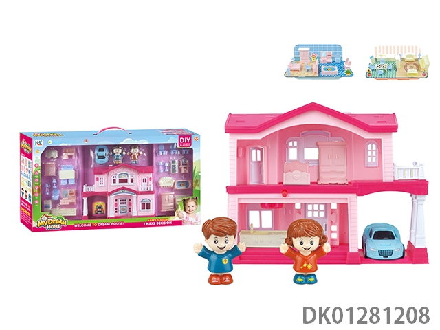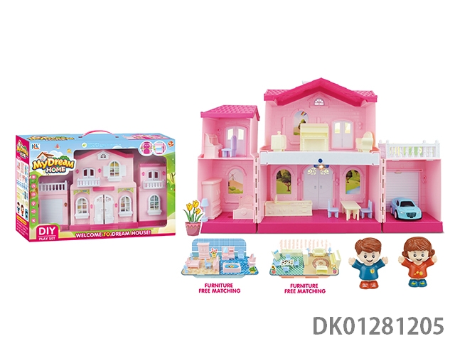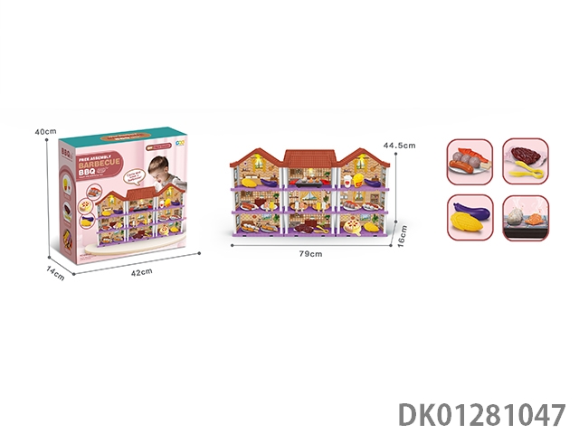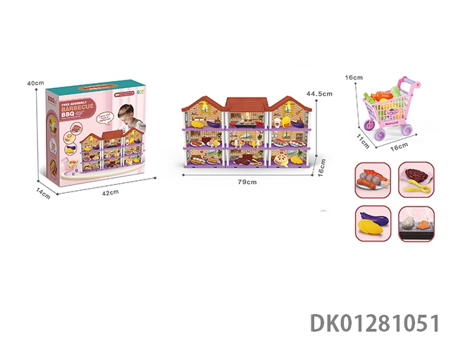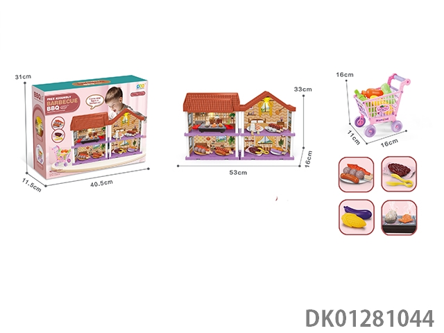 Diy villa set with barbecue/shopping cart/dual lights
