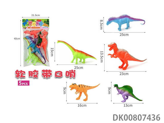 Five soft rubber dinosaur belt b whistle