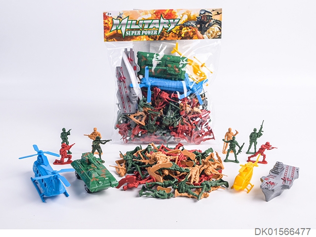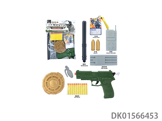 Military kit (baton and hang tag, telescope and walkie talkie, time bomb and camera * 2, bullet chain, landmines and hand grenades, compass and bullet clip, and may fourth soft bullet gun)