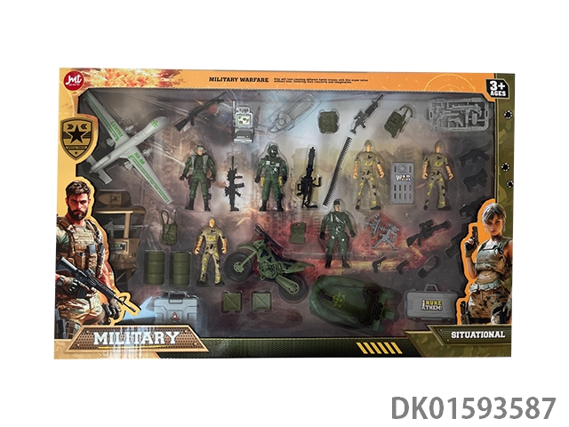 12Cm military personnel equipped with sliding motorcycles, sliding tanks, and trees
