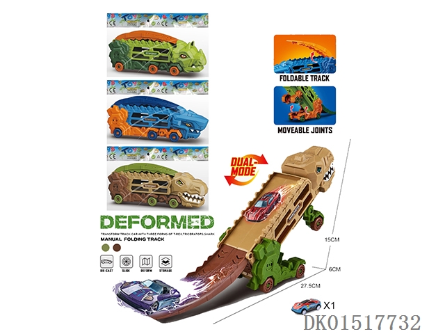(Gcc) transforming tyrannosaurus rex, triceratops, shark storage rail car, and 1 metal car