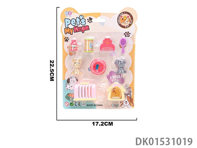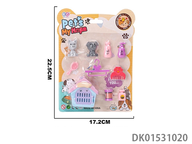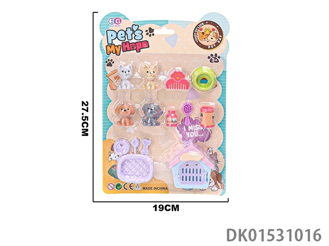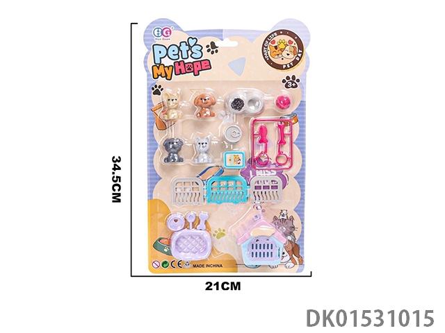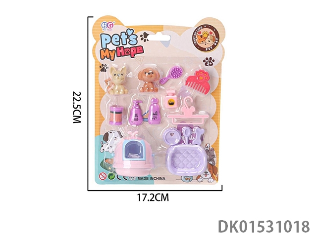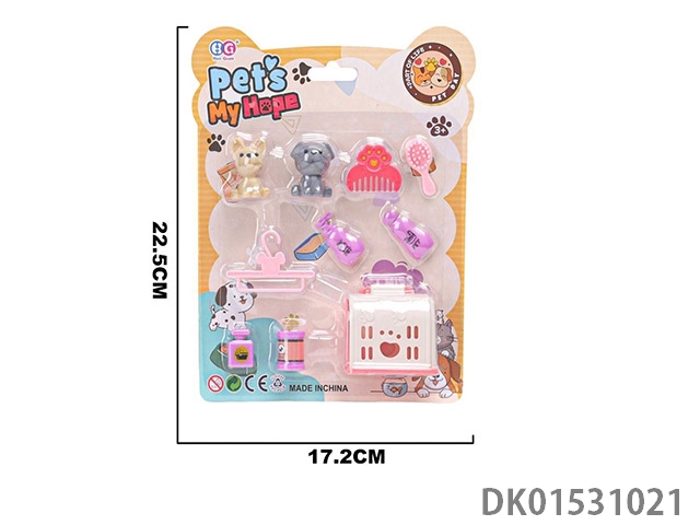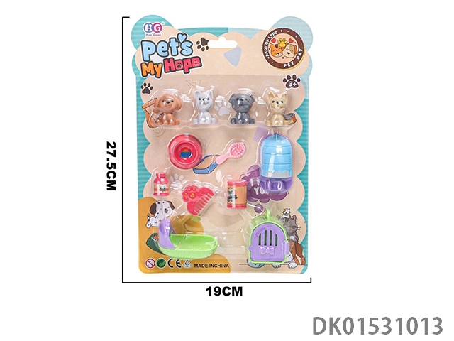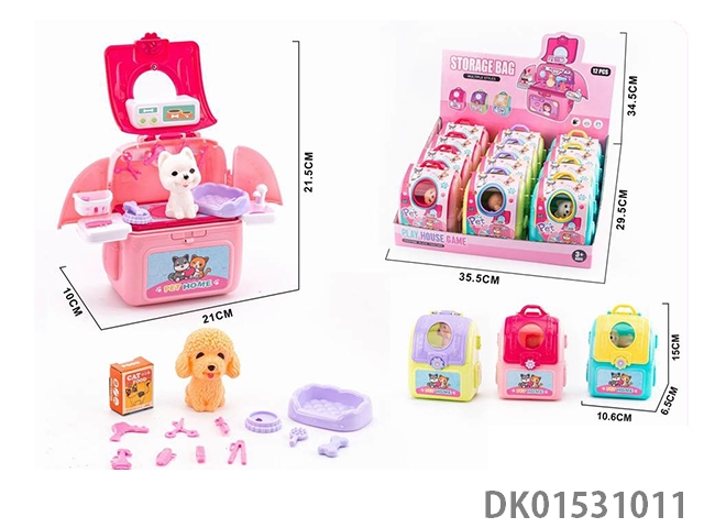 Storage backpack with vinyl cat and dog jewelry set for home play, 12 pieces/box
