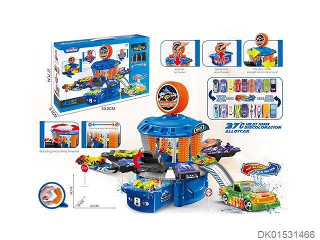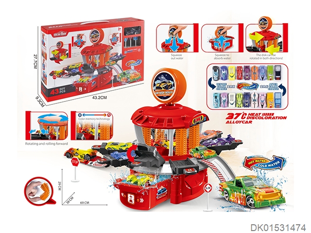 Multi functional (color changing) urban car wash set (equipped with 1 color changing alloy car and 7 road signs)