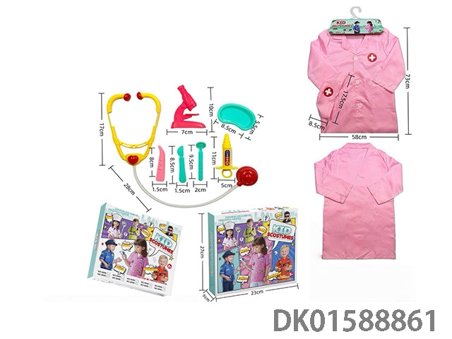 Cross border children’s diy clothing role-playing round label doctor’s uniform and 7-piece set (thickened version) (color box version) powder