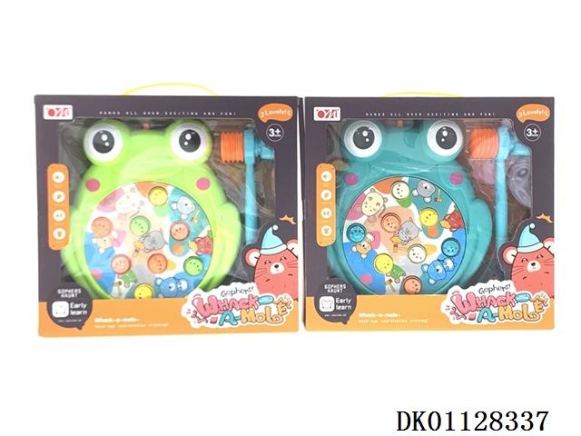 Cute frog beats gopher (spinning, music)