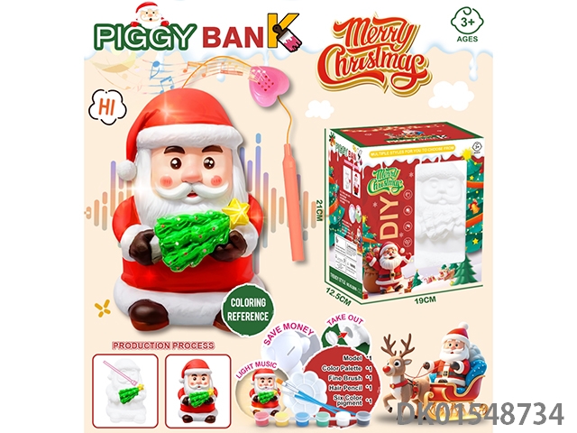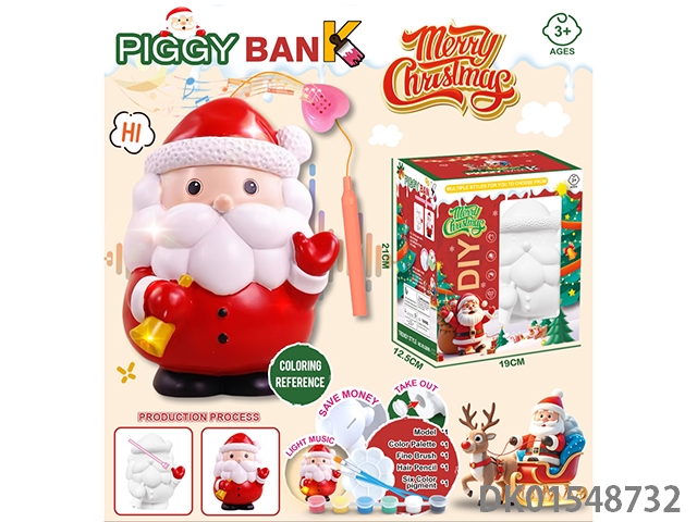 Santa claus gifts, lights, music, hand-held lanterns, piggy bank