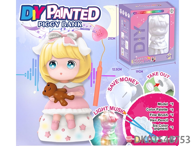 Diy painted piggy bank, music handheld lantern - planet doll