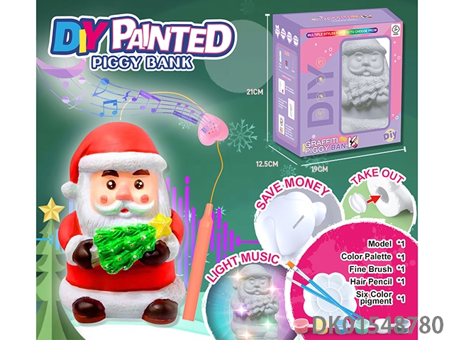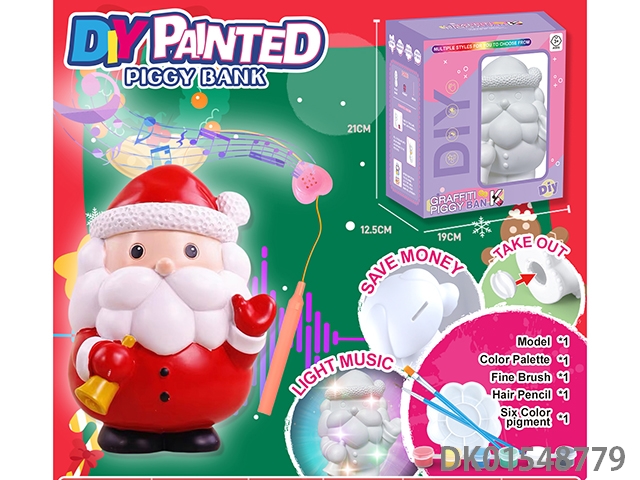 Diy painted piggy bank, music handheld lantern - santa claus