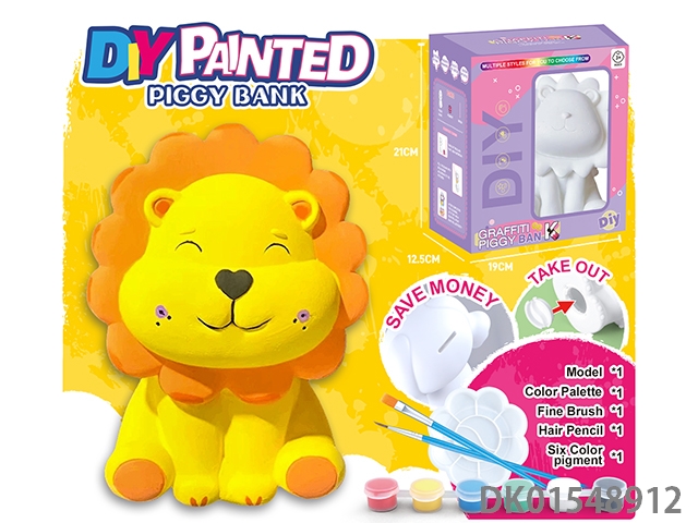 Diy painted piggy bank - lion