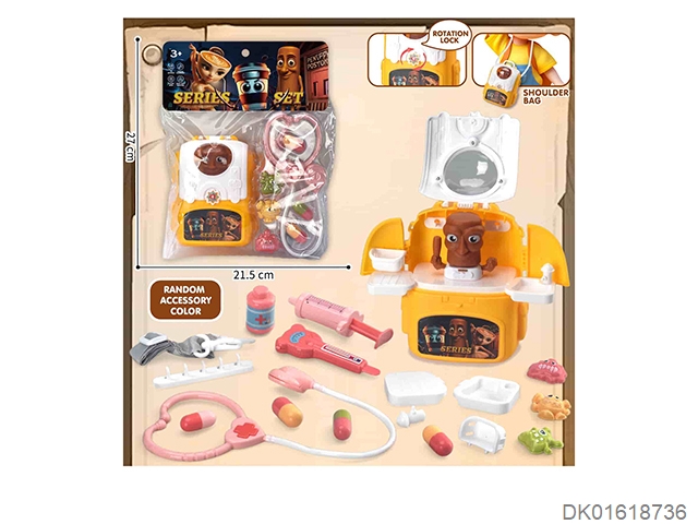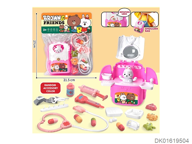 Rabbit playing house, one shoulder backpack and doctor