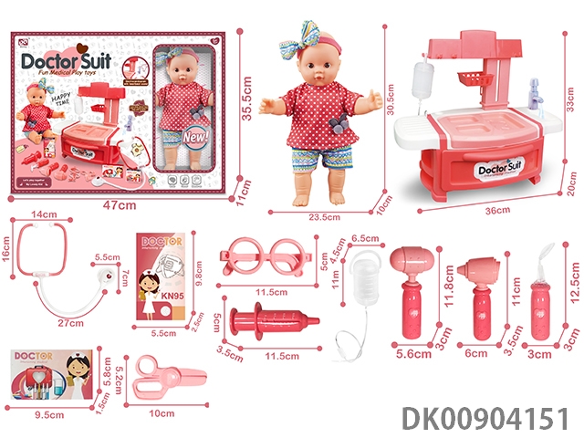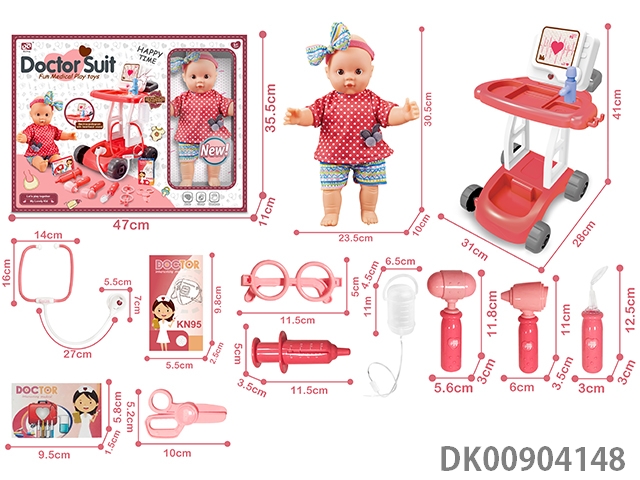 12 Inch cotton body pond glue doll and medical cart set with function