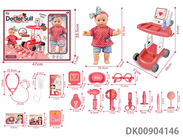 12 Inch cotton body pond glue doll and medical cart with function