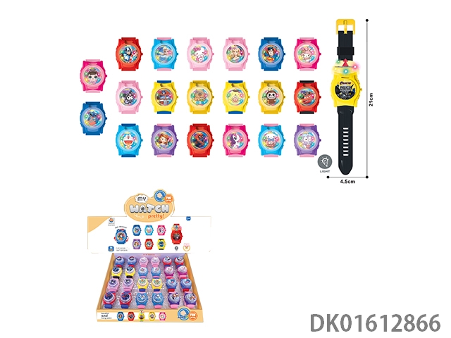 Flip up light rotating electronic watch with battery pack, 24 pieces/box