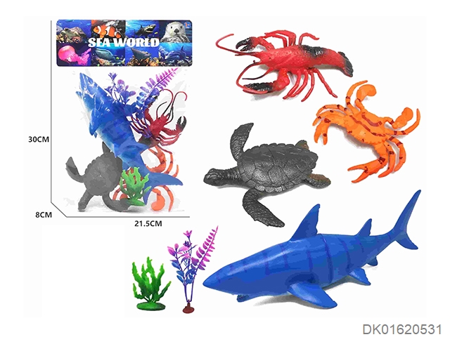 7 marine animals: lobster, small shark